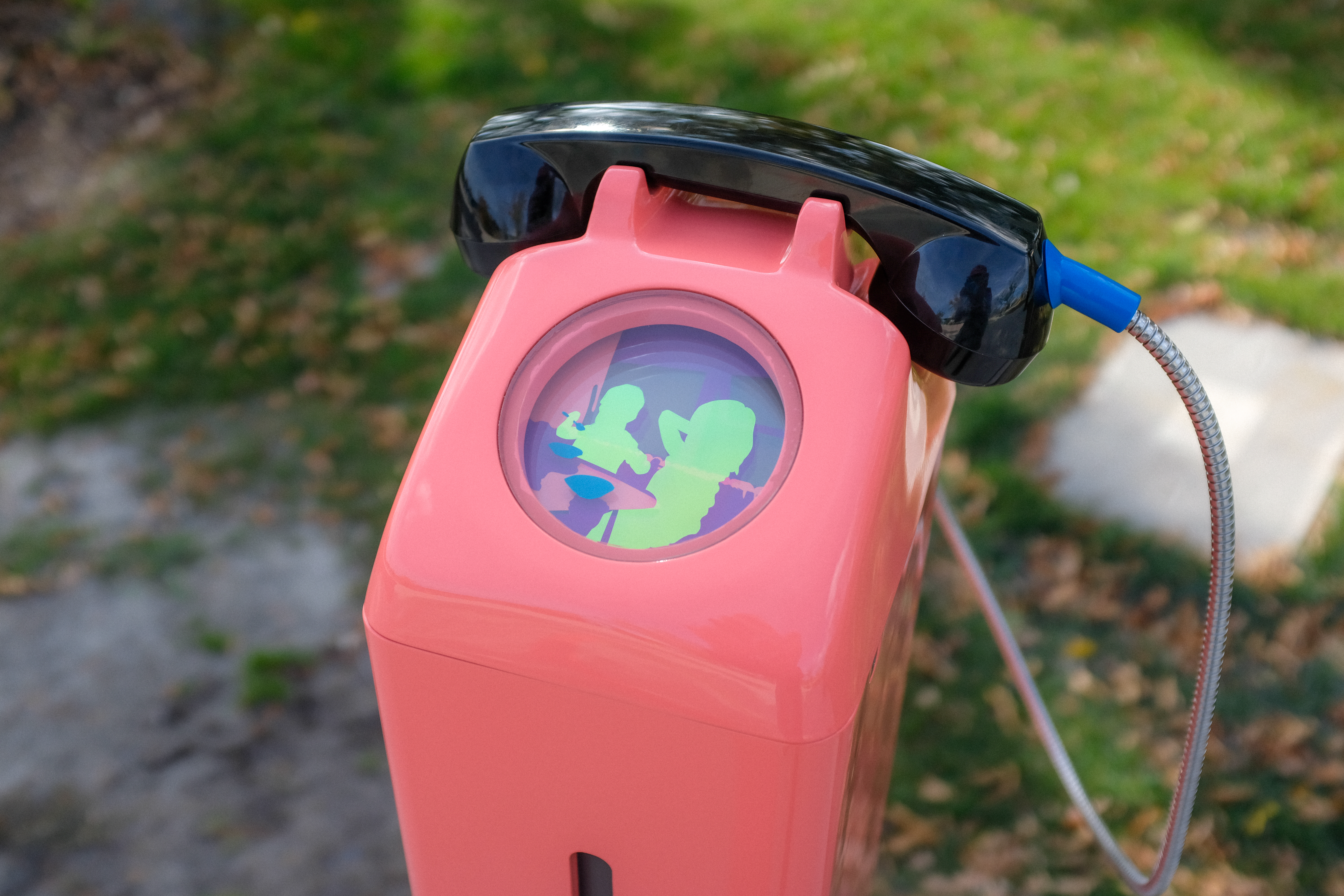 As a way of grounding the phones in the community, the public was invited to submit photos of “a place that feels like home,” and these images were used to create the layered dioramas for the circular telephone windows ornamenting the face of each phone.
