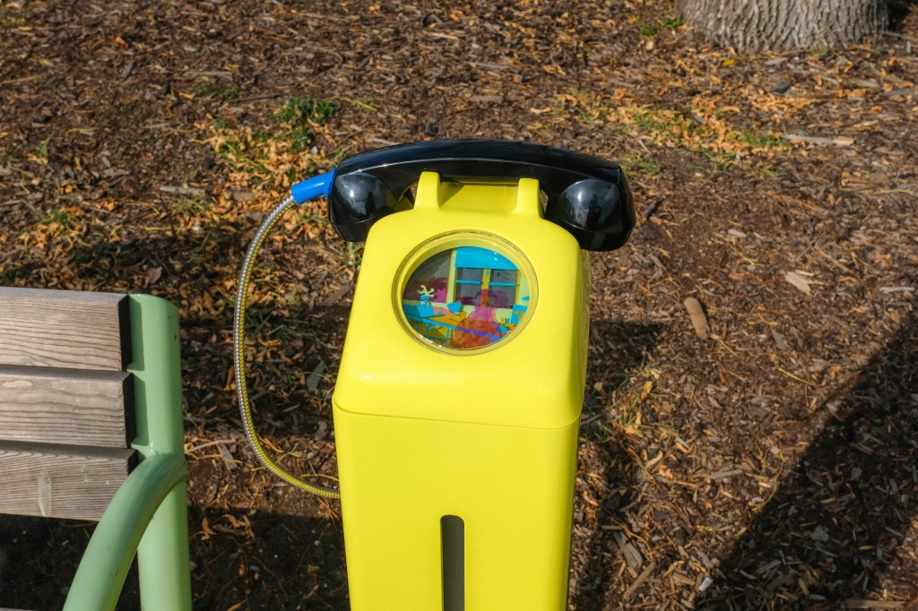 The final phone is black. This phone is an “Easter Egg” – a discoverable surprise. Instead of calling a phone of a matching colour, the black phone calls all the phones in the park at once.