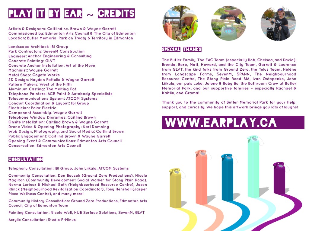 The Butler Family, Chelsea, David, Rob, Jenna, Jana, Bob, and other David from EAC, Barb, Brenda, Matt, Howard, and the City Team, Garrett & Laurence from GLVT, the kind folks from Ground Zero, Syed, Jaya and Parvinder from Telus, Hélène from Landscape Forms, SevenM, SPANN & The Stony Plain Road BIA, Ivan Ostapenko, John Liikala, our pals Luke, Jolene & Baby Bo, the Bathroom Crew at Butler Memorial Park, and our supportive families – especially Rachael & Kaitlin!